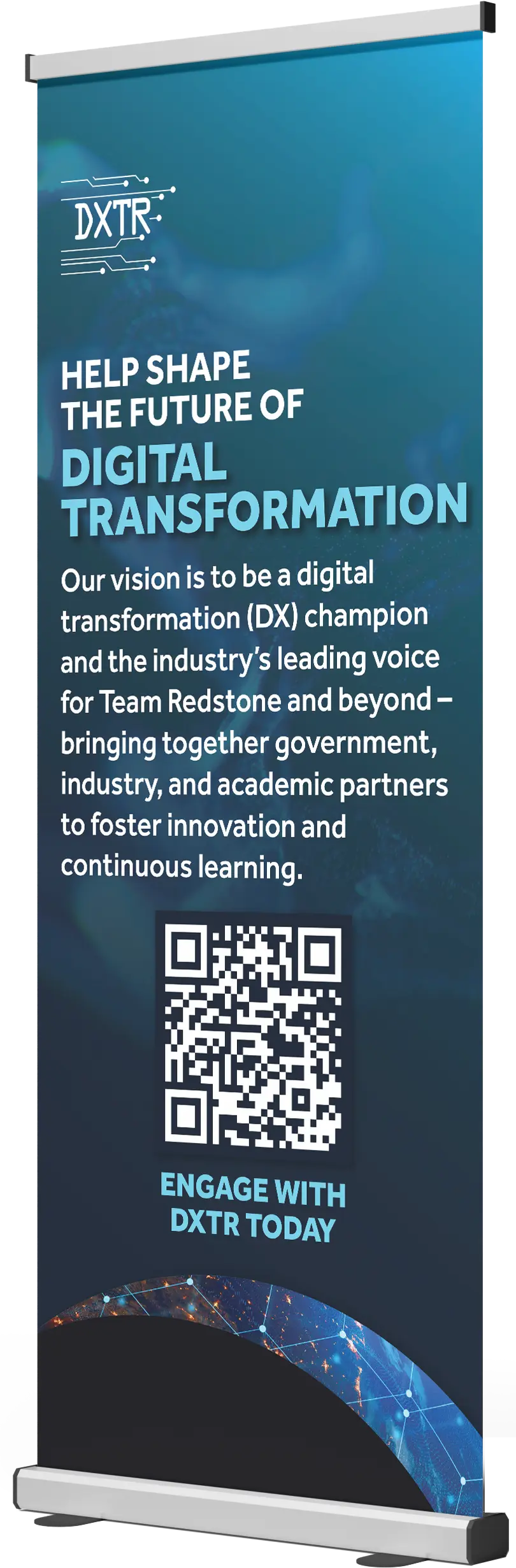 We conducted stakeholder surveys, built the DXTR messaging platform, designed launch materials (including banners, rack cards, taglines, and mission statements), and led outreach efforts to establish DXTR’s presence among Team Redstone’s military, academic, and industry audiences.
