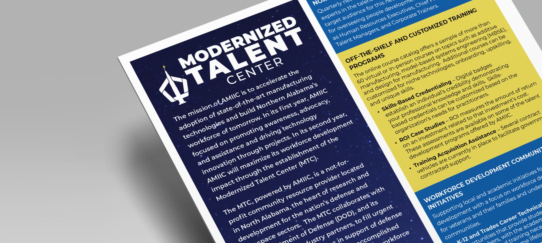 We also led communications for the launch of the Modernized Talent Center (MTC), an expansion designed to close regional workforce gaps. Our team created messaging, collateral, signage, and digital campaigns that emphasized AMIIC’s investment in training and reskilling the next generation of the defense manufacturing workforce. Both initiatives elevated AMIIC’s reputation as a hands-on, people-focused innovator in North Alabama’s manufacturing ecosystem.