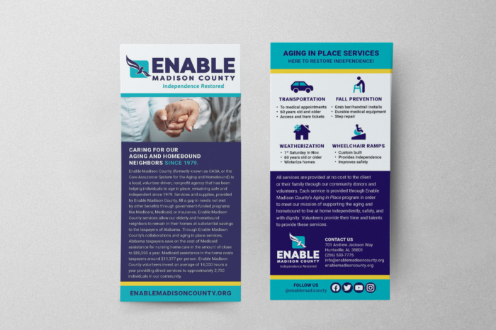 The partnership between CASA of Madison County and Flourish resulted in a successful transformation into ENABLE Madison County. The revitalized brand identity clarified ENABLE’s mission attracted new donors (while engaing existing ones), and positioned them for long-term growth. The engaging website was a powerful tool for showcasing ENABLE’s impact and encouraging community support. Flourish’s expertise in branding and web development empowered ENABLE to position itself as a leading organization, making a meaningful difference in the lives of the elderly and homebound in Madison County.