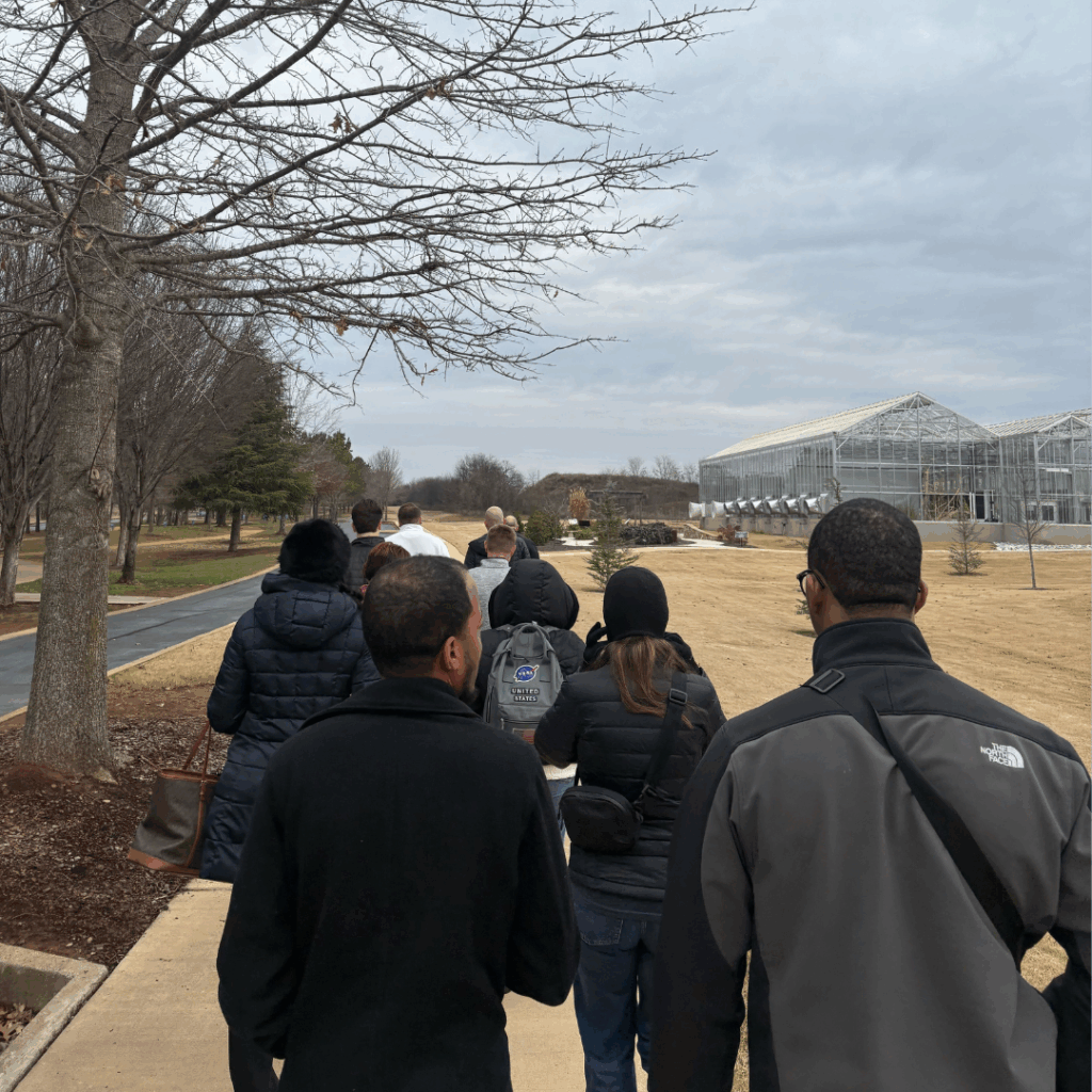 We began at Astrion before heading to HudsonAlpha Institute for Biotechnology, where we toured the campus and heard from a panel of local founders and entrepreneurs. Moderated by a venture capital representative, the discussion covered everything from startup challenges to scaling success. The HudsonAlpha tour was fascinating, from the greenhouse, where we learned how specific peanut varieties are engineered for major candy companies, to the double helix-inspired walking trail that turns scientific discovery into public art. The halls lined with published research showed just how much innovation happens right here in our backyard.